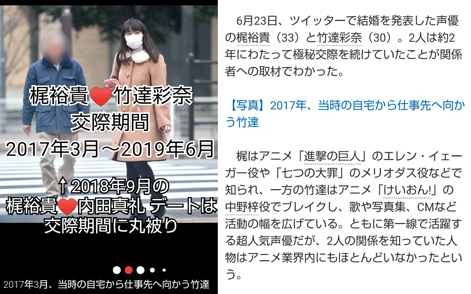 竹達との二股疑惑も